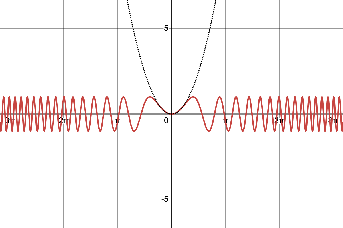 I know that grows faster than , so that means the frequency of zero crossings and maxima will increase as we move further from the origin according to .